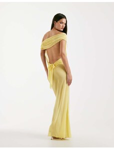 I.AM.GIA Kahlo chiffon sheer off shoulder open back tie detail maxi dress in yellow