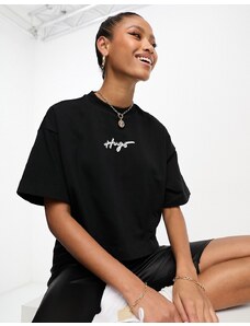 Hugo Red HUGO cropped Tee 3 relaxed fit script t-shirt in black