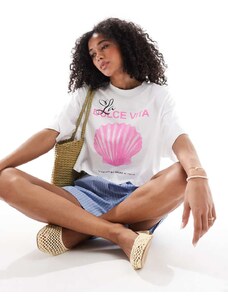 The Frolic exclusive baby tee with printed floral shell graphic logo in cream-White