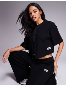 ASOS Weekend Collective Weekend Collective co-ord short sleeve waffle cardigan with nylon trim in black