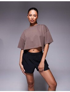 4505 Icon heavyweight cotton cropped t-shirt with quick dry finish in washed taupe-Brown