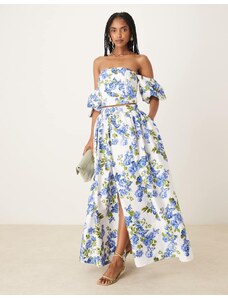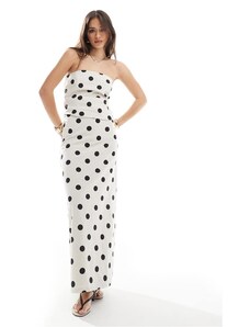 4th & Reckless linen look maxi skirt co-ord in cream polka dot-Multi