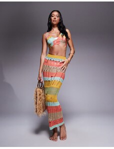 Missyempire beach distressed knit maxi skirt co-ord in multi stripe