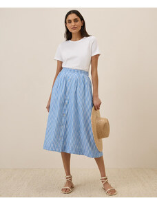 PACT Apparel Women's Blue Bondi Stripe Sunset Lightweight Cotton Button Skirt