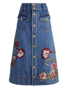 Alice + olivia Dahlia floral-embroidered denim skirt - Blue