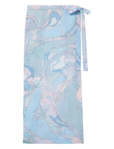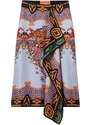 light blue floral print ruffled asymmetric hem geometric border print silk insect motif