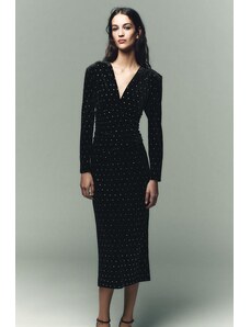 ZARA SPARKLY VELVET MIDI DRESS Black XS