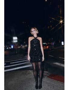 ZARA SPARKLY VELVET MINI DRESS Black gold XS