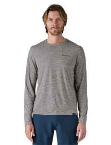 Patagonia Mens Long Sleeve Cap Cool Daily Graphic Shirt, Boardshort Logo Abalone Blue: Feather Grey / XL