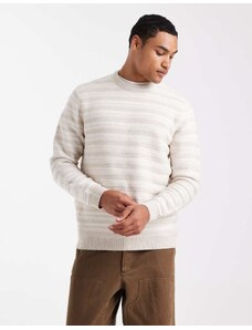 ONLY & SONS regular fit crew neck open knit jumper in stone with white stripes