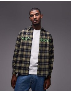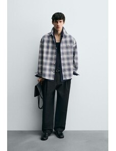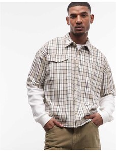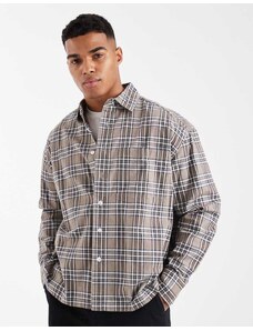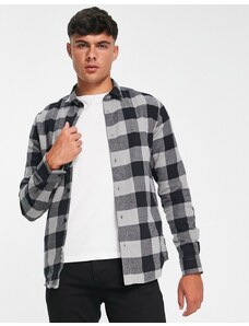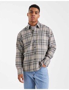 Boss Orange locky oversized fit heavyweight checked overshirt in light grey