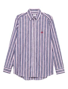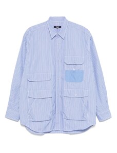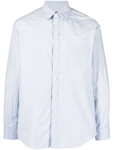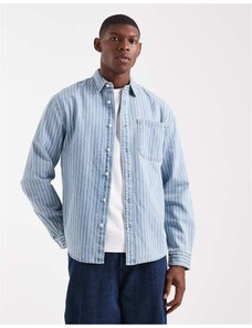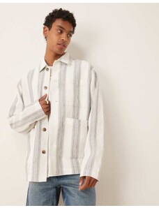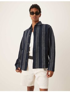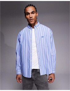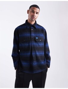HUGO BLUE Ebolt horizontal fuzzy stripe oversized fit overshirt in mid blue