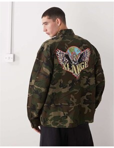 XLarge ripstop military graphic logo shirt in green camo print-Multi