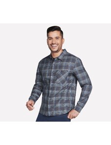 Skechers Men's GO DRI Ridgetop Button Down Shirt in Black/Charcoal, Size Small | Cotton/Modal