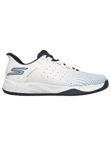 Skechers Men's Slip-ins Relaxed Fit: Viper Court Reload Sneaker in White/Navy Blue /Light Blue, Size 6 | Textile/Synthetic, Vegan, Machine Washable ,