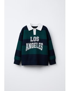 ZARA STRIPED VARSITY KNIT POLO JUMPER Green stripe 6-7 years (122 cm)