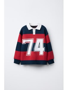ZARA STRIPED VARSITY KNIT POLO SWEATER Red 6-7 years (122 cm)