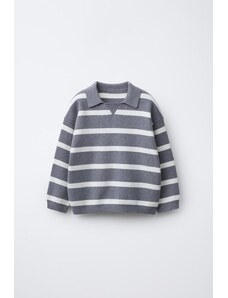 ZARA STRIPED KNIT POLO SWEATER Grey / Blue 1½ years (86 cm)