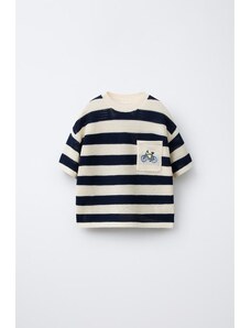 ZARA EMBROIDERED POCKET KNITTED T-SHIRT Ecru / Navy 1½ years (86 cm)