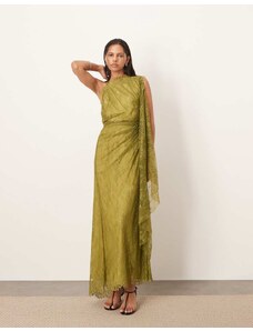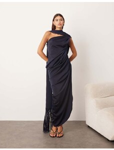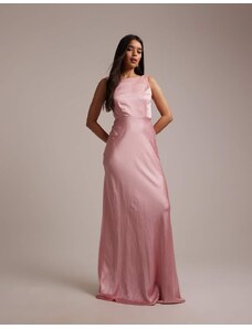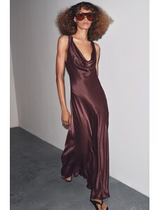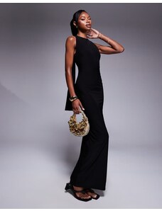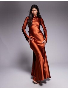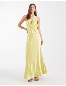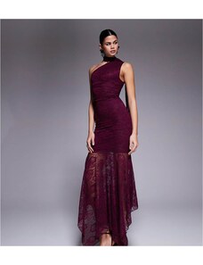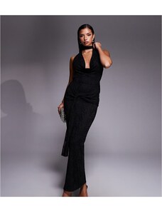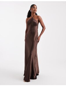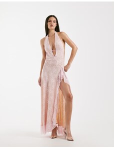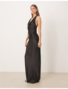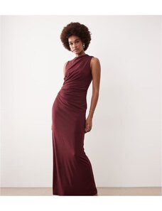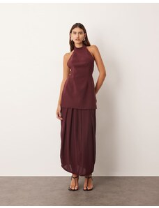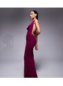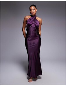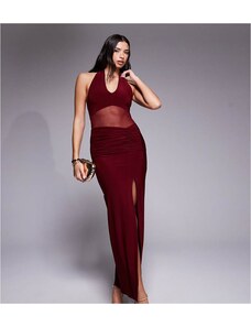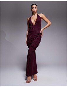 Murci exclusive mesh halterneck open back cowl neck maxi dress in plum-Purple