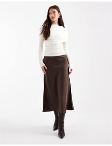 YAS satin midi skirt in chocolate brown