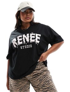 Renee Studio Plus x Holly Wynne exclusive embroidered bubble logo oversized t-shirt in black