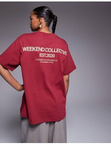 ASOS Weekend Collective Weekend Collective Icon oversized t-shirt with bold font back graphic in plum-Red