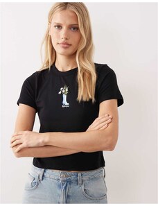 The Frolic exclusive baby tee with printed floral shell graphic logo in cream-White