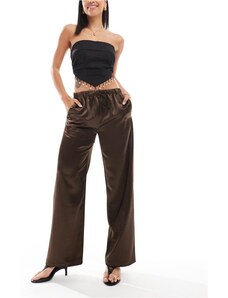 4th & Reckless satin straight leg tie waist trousers in brown