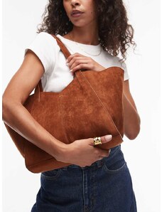 PASQ faux suede scoop top tote bag in tan-Brown