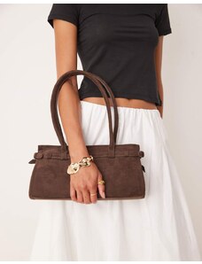 Gina Tricot faux suede buckle bowling shoulder bag with long handles in dark brown