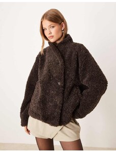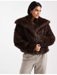 ONLY faux fur oversized collar jacket in chocolate-Brown