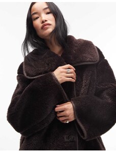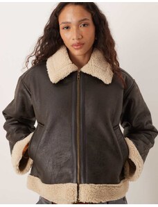 ARKET oversized faux shearling jacket in brown with contrast edging