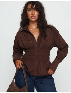 Princess Polly As You Are shirred waist button up shirt in chocolate-Brown