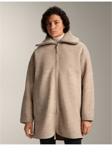 OYSHO Long faux-shearling jacket in sand melange-Brown