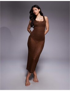 The Frolic exclusive sheer sequin knit open tie back maxi beach dress in chocolate-Brown