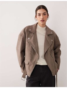JJXX faux suede biker jacket in light brown