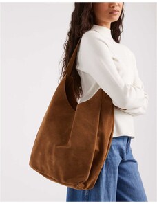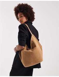 PASQ faux suede slouch tote bag in tan-Brown
