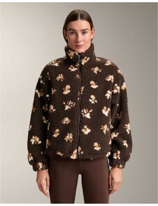 OYSHO Faux-shearling floral print jacket in brown