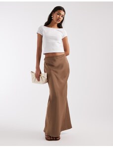 4th & Reckless satin column maxi skirt in mocha-Brown
