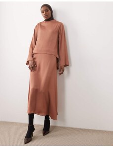 IYAL hammered satin midi slip skirt co-ord in rust-Brown