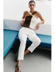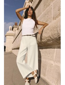 ZARA BRAIDED BELT CULOTTE TROUSERS Ecru XS