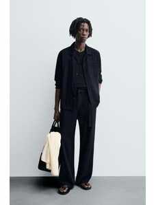 ZARA RELAXED FIT TROUSERS WITH BELT Navy blue S