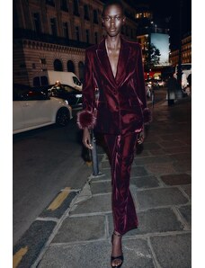 ZARA VELVET WIDE-LEG TROUSERS Burgundy XS
