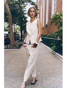 ZARA FLOWING TROUSERS WITH BELT Oyster-white XS