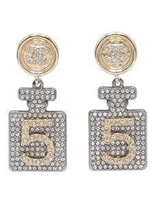 CHANEL Pre-Owned 2021 Gold Plated and Silver Plated CC Rhinestone No 5 Perfume Bottle Drop Push Back Earrings costume earrings