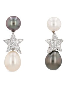 CHANEL Pre-Owned 2010's pearl diamond stars earrings - Silver