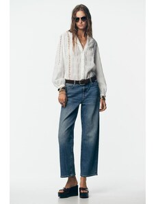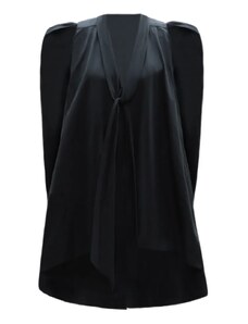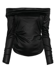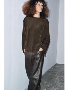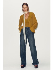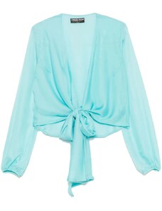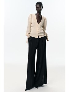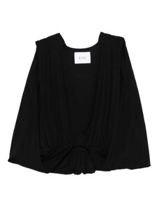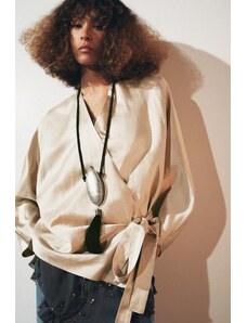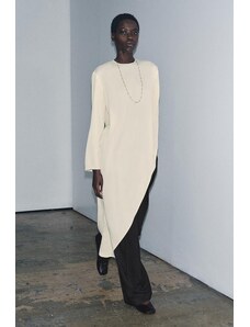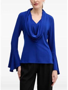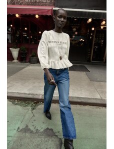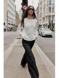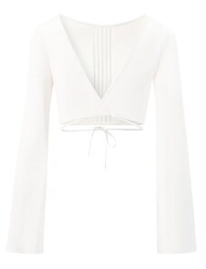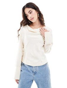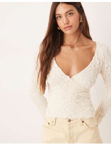 AWARE stretchy jaquard knit bell sleeve wrap detail top in cream-White
