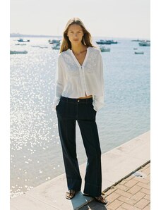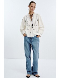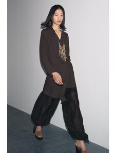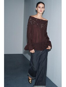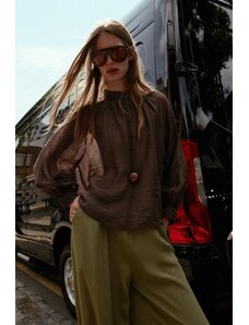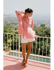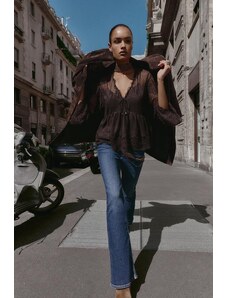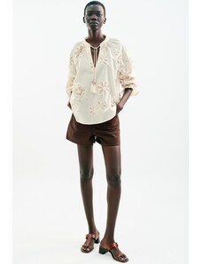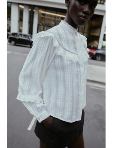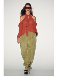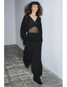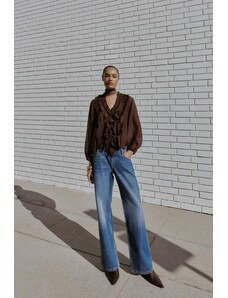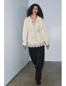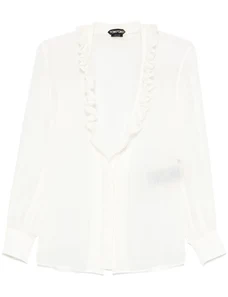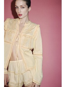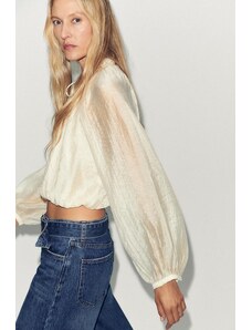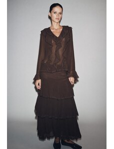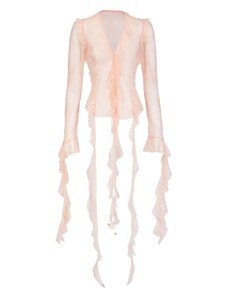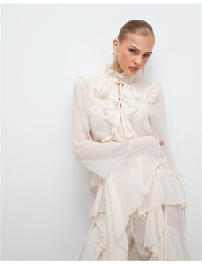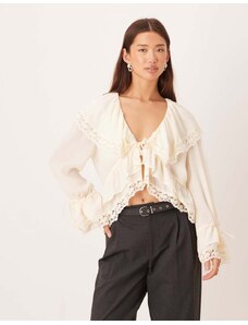 Noughts & Kisses chiffon extreme ruffle blouse co-ord in cream-Neutral
