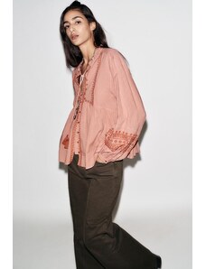 ZARA CONTRAST EMBROIDERY BLOUSE MARSALA XS